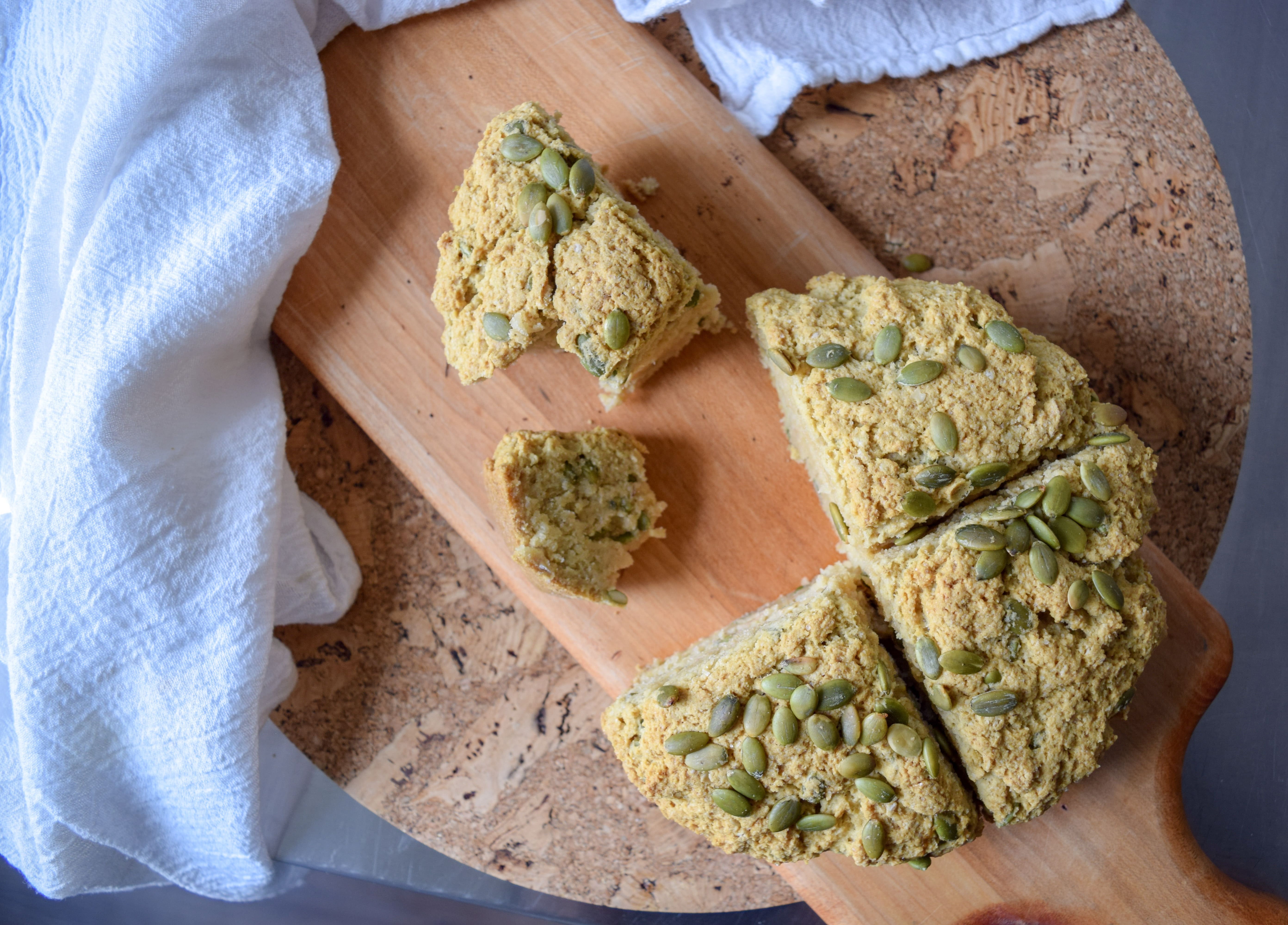 Last weekend I tested a recipe for Top-8 Free Irish soda bread and it was so good I ate 1/4 of it myself before it even cooled. Heavy on oat flour (a nod to the Irish) and flecked with pumpkin seeds this soda bread will be the perfect accompaniment to your St. Paddy’s Day table. It’s super easy to make and is also good the next day toasted! Add raisins or not. Add the pumpkin seeds or not. Make it your own! Just be sure to make it.