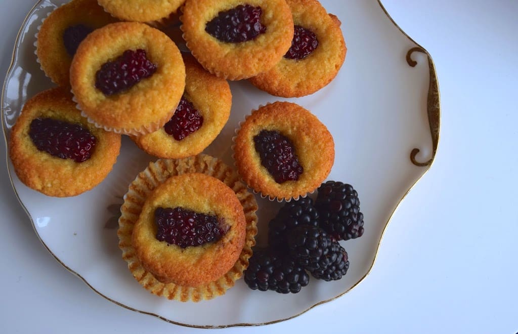 One morning I woke up to a beautiful cup of dandelion tea and this gorgeous little muffin studded with juicy blackberries. After one bite I knew I would have to recreate it at home. Gluten free and even grain free, it had the zip of lemon running through it, the slightest hint of almond all with a gorgeous blackberry on top ready for me to bite into.