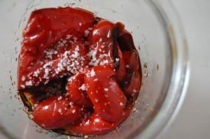 3. Remove from the balsamic vinegar into a glass jar. Pour some of the balsamic sauce over, enough to cover about ½ – ¾ of the peppers and then add the 2 T. olive oil. Generously sprinkle with fresh cracked pepper and sea salt. Gently stir to combine, cover and refrigerate until ready to use (unless you eat them all before then!).
