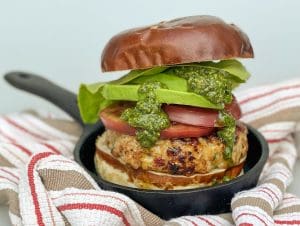 When you think about a burger, in essence, it’s kinda like a big meatball! And when I think about it that way what I really want is a chicken burger. With Italian flavors. And maybe pesto. And maybe tomatoes. Because doesn’t that all sound delicious?