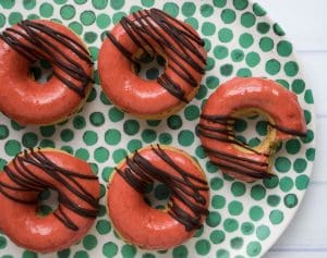 This recipe for mini doughnuts came about after I wanted to make one that is different, pretty and of course tastes darn delicious! Lately I’ve been playing around quite a bit with dehydrated strawberries and there is so much you can do with them. One of my favorite things? Pulverize them and add them to frosting. It’s a gorgeous, natural and delicious way to turn your frostings or icings pink!