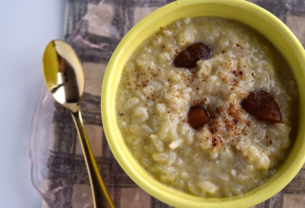 Coconut-Cardamom Rice Pudding with Boozy Apricots