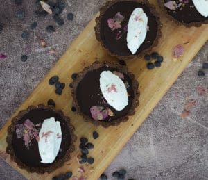 - When ready to serve-whip the cold coconut cream with a hand mixer until thick. Add the rose water or vanilla extract and mix in. Spoon on top of each tartlette and enjoy!