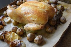 Well, we still need to eat. So when the leftovers are all gone and you need something to make check out this easy recipe for roasted chicken. It’s one of my favorite meals to make when people are over because it makes your house smell amazing and is a one pan kinda deal.