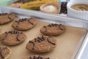 Who doesn’t love a theme?! Now, my brother in law has really become a master at smoking meats so he is in charge of the majority of the menu. I, on the other hand, will take care of the cocktails and the desserts. And no football party is complete without something in the shape of a football, right? These cookies are perfect. I originally created the recipe for Enjoy Life Foods years ago but each and every year since then they make it onto at least one of my menus for football games. They’re just too cute!