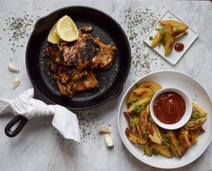 Italian Marinated Chicken Thighs and Crispy Oven Potatoes