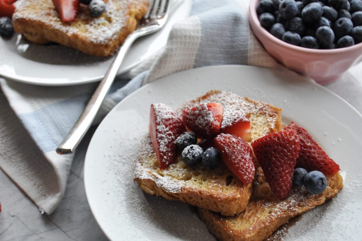 Growing up French toast was always my go to for breakfast. The outside was crispy and hot and the center soaked up the maple syrup like a sponge which was always my favorite part. I saved the very middle bite for last!