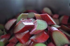 - Place the rhubarb, strawberries and ginger in a medium, heavy bottomed sauce pan. Toss with the cane sugar and set aside for 30-60 minutes, stirring occasionally.