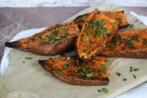 - Remove from the oven, place on a platter and sprinkle with the snipped chive. Enjoy!