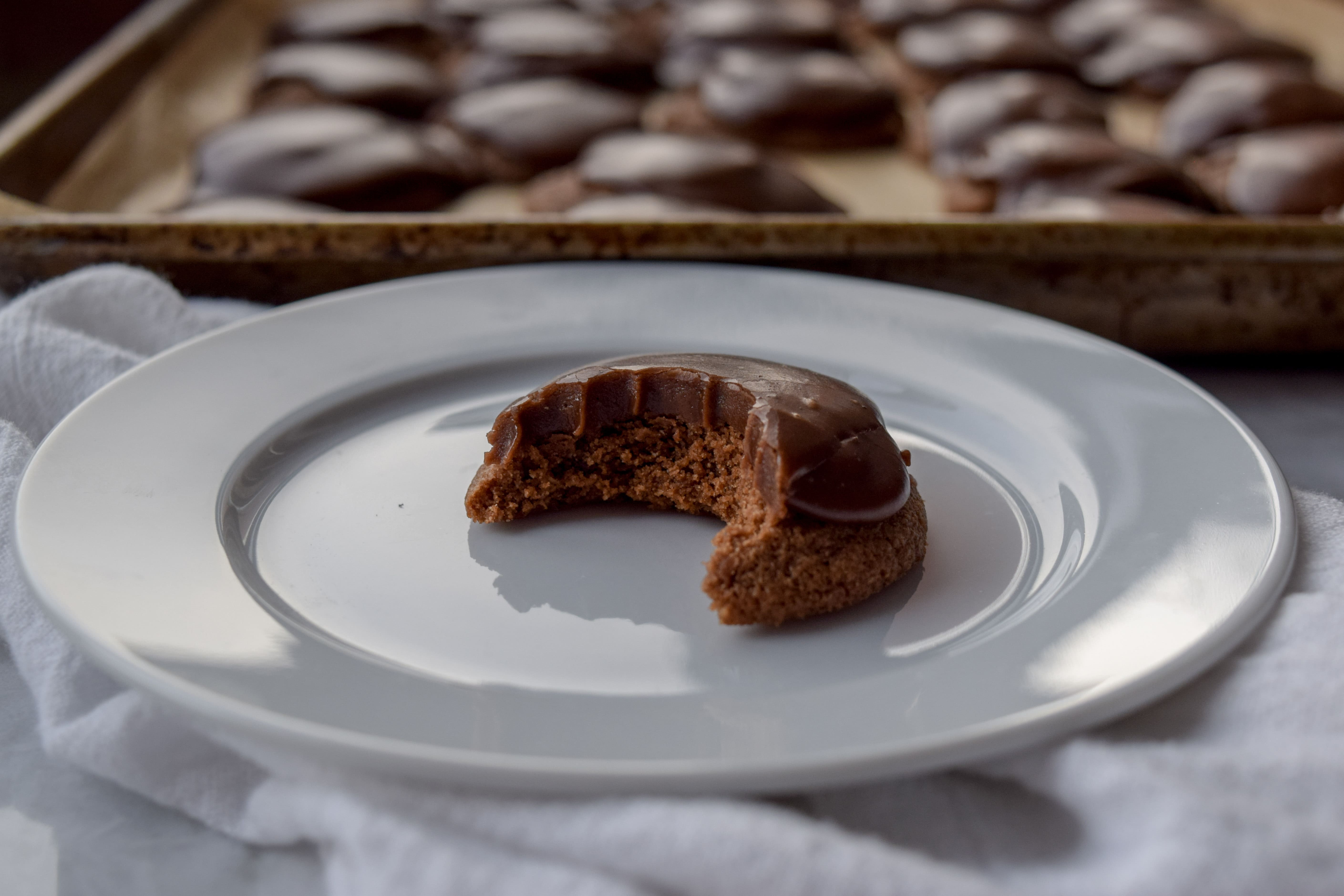 - Prepare the frosting by melting the butter over low in a medium saucepan with the cocoa powder and the dairy free milk. Shake the sifted powdered sugar into the saucepan and whisk until you have a smooth mixture. Immediately pour over the cookies. Allow them to set about an hour and enjoy!