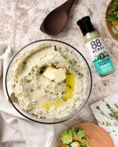 Mashed potatoes are a quintessential part of the Turkey Day table (or really any dinner table, am I right?!). And what do you think happens when you mix vegan ranch dressing with mashed potatoes and vegan butter? MAGIC! If mashed potatoes seem daunting to you this is another recipe that will surprise you. The 88 Acres Garden Ranch dressing has basically done the work for you with all of the dairy free creaminess and herbs tucked in there. I promise once you make these you’ll always make mashed potatoes from scratch!