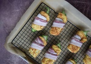 - Wrap the bacon around the Cloudies, making sure to have the end wrapped on the bottom to keep it from curling up.
