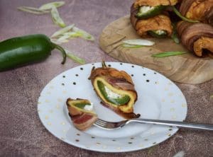 Well, I’ve been doing some fun work with the brand, Cloudies, and they tasked me with a Super Bowl recipe. And this one is SO fun! Rather than stuffing the jalapeños fully with cream cheese that can make them heavier I decided to lighten them up with a mixture of cream cheese plus greek yogurt then added minced green onion, salt and pepper and optional chipotle powder. Wrapped that in a cheddar Cloudies and then wrapped that in a piece of bacon. What is NOT to like about that fun situation?!