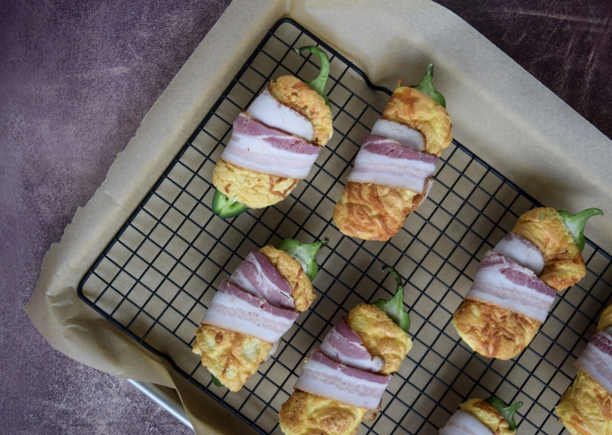 Well, I’ve been doing some fun work with the brand, Cloudies, and they tasked me with a Super Bowl recipe. And this one is SO fun! Rather than stuffing the jalapeños fully with cream cheese that can make them heavier I decided to lighten them up with a mixture of cream cheese plus greek yogurt then added minced green onion, salt and pepper and optional chipotle powder. Wrapped that in a cheddar Cloudies and then wrapped that in a piece of bacon. What is NOT to like about that fun situation?!