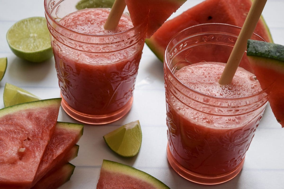 - Add the watermelon to a blender base.