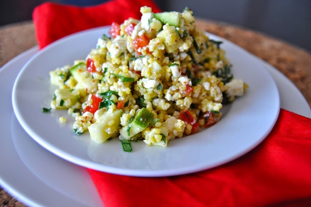 One of the recipes I planned to teach them is this millet salad (I switched it to a different corn salad at the last minute….another recipe I must post for you lovelies!). It’s is one of those that I just want everyone to know about! It just says summer. It is very light, has just a handful of seasonal ingredients and more importantly it is easy to throw together because, really, you want to be hanging with your friends and a glass of rosè outside not inside in the kitchen.